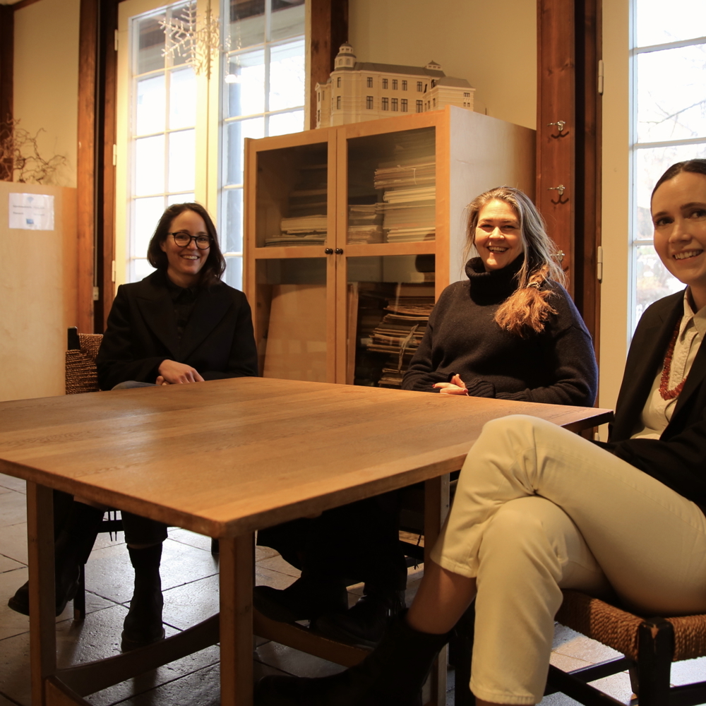 Hanna Dencik Petersson, Siri Jæger Brudvik og Sigrún Sumarliðadóttir i Oslo Arkitektforening (OAF) åpner Hagestuen i Josefines gate for arrangementer. Foto: