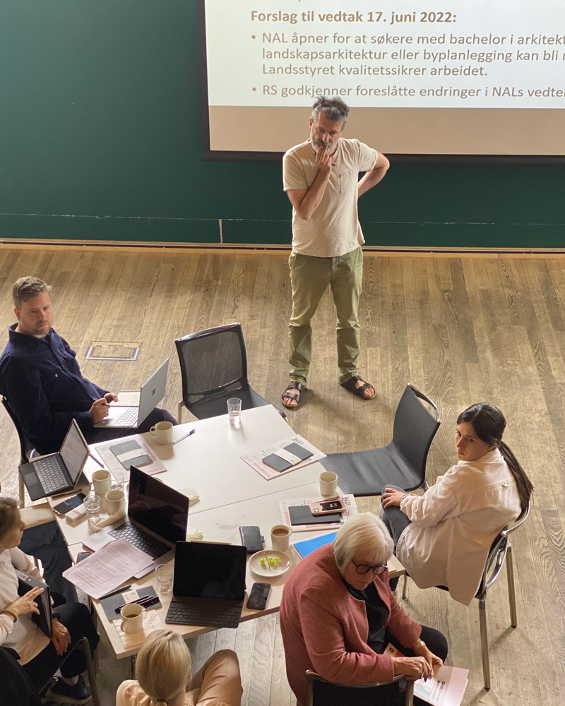 Fredag formiddag ble det vedtatt å godkjenne foreslåtte endringer i NALs vedtekter, som nå åpner for at søkere med tre års grunnutdanning/bachelor i arkitektur og master i landskapsarkitektur eller byplanlegging kan bli medlemmer av NAL.