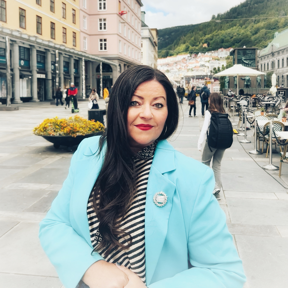 Tina Larsen er NALs nye president. I tillegg til å være en brennende engasjert arkitekt, er hun også musiker. Her avbildet på Torgallmenningen i Larsens hjemby Bergen.