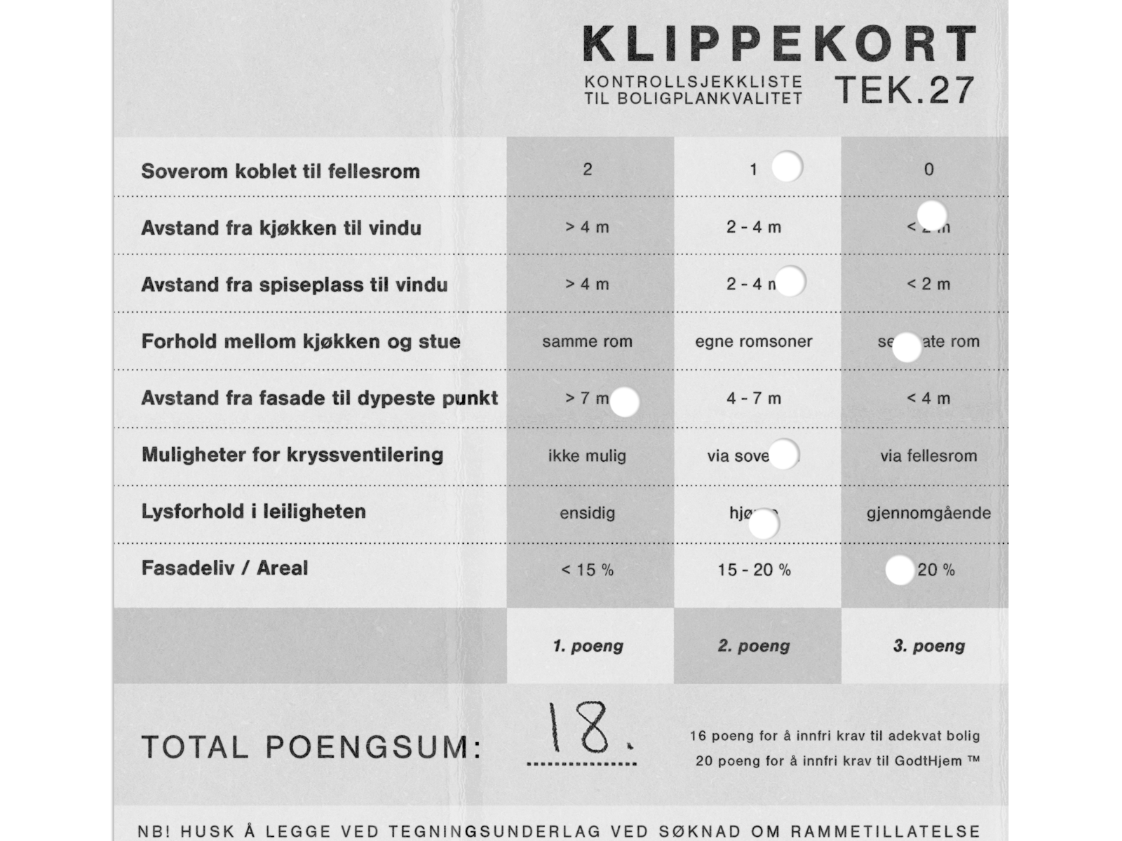 Klippekort på bokvalitet. Louis Gervais har laget det han kaller et «spekulativ forslag til poengsystem/sikring av bokvalitet i fremtidens TEK».