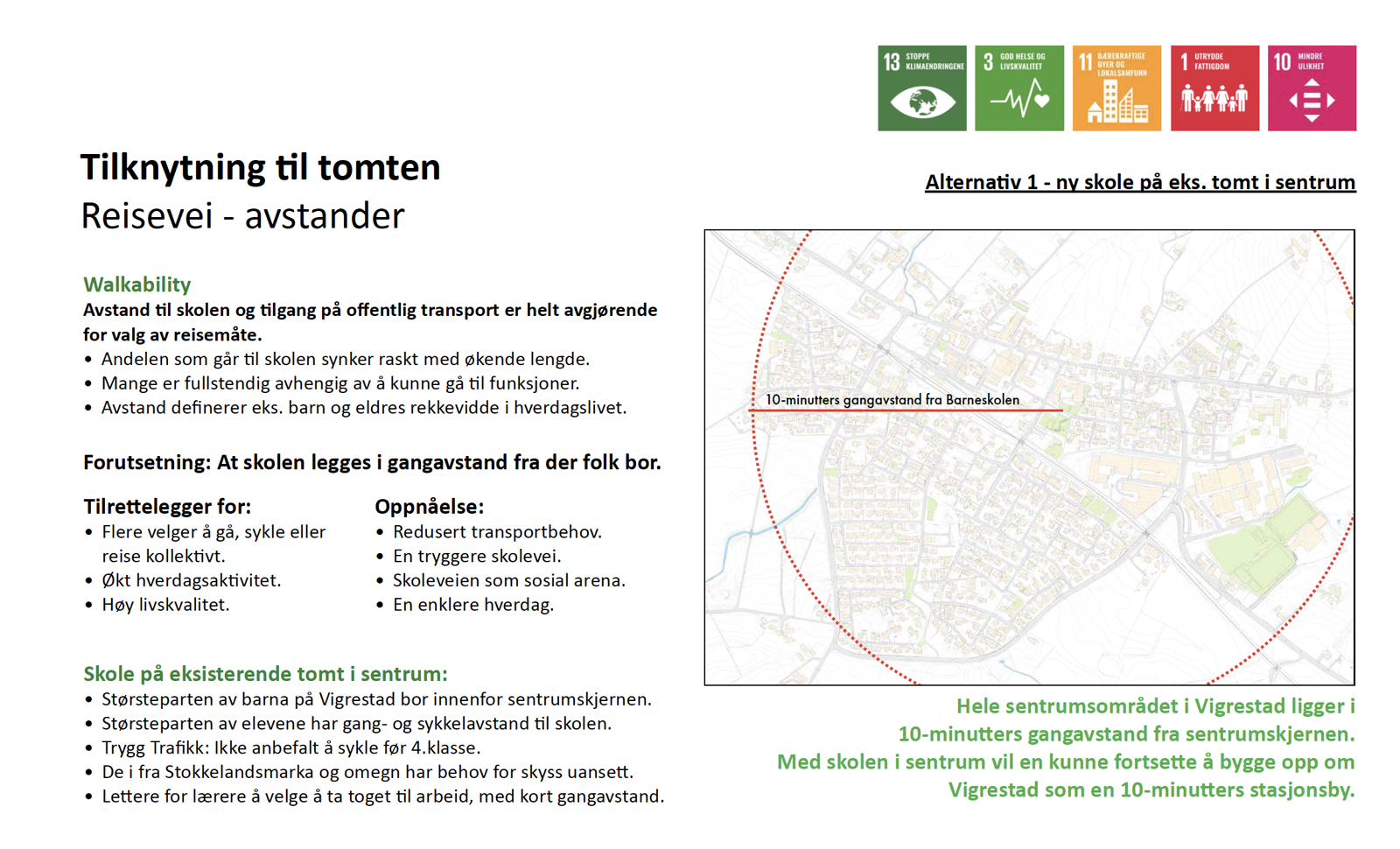– Man klarer å bygge nye skoler på eksisterende tomter i byen, og selv om vi har masse arealer å ta av her, så er det minst like viktig å tenke bærekraft på bygda.Vigrestad har et godt utgangspunkt for å bygge opp under det sterke knutepunktet de har i sentrum i dag og sine kvaliteter som en 10-minutters stasjonsby. Skoler bør bygges nært der folk flest bor, og nærhet til kollektivtilbud, i dette tilfellet togstasjonen, er også viktig for å gjøre skolen til en mer attraktiv arbeidsplass for tilreisende fagpersoner. På små steder som Vigrestad, hvor det ikke er det store kundegrunnlaget for å holde liv i butikker og andre tilbud og tjenester, så er det også ekstra viktig å plassere offentlige funksjoner, som eksempelvis skoler, sentralt for å tilrettelegge for bærekraftige liv for folk flest og for å oppnå levende sentrum, sier Gravdal.