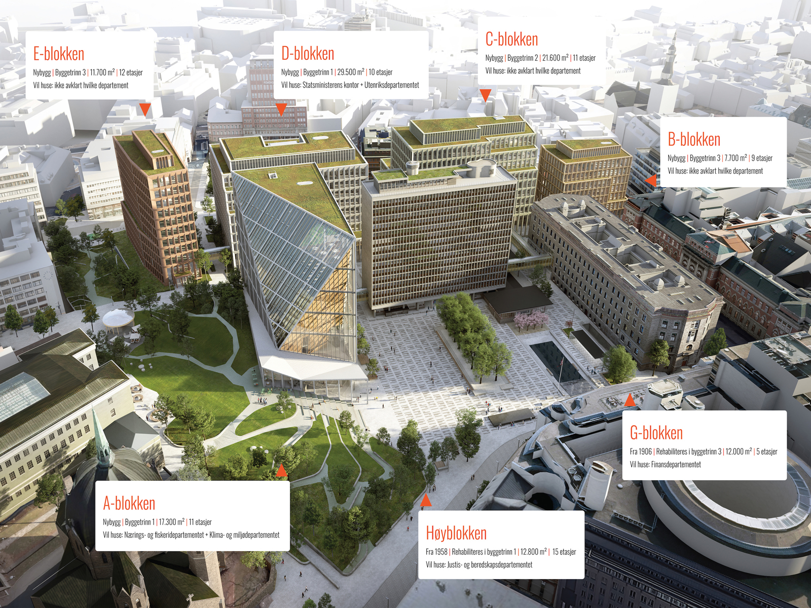 Regjeringens nye planer for regjeringskvartalet er derfor som følger: