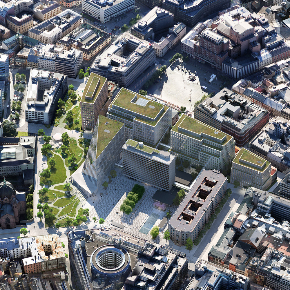 Illustrasjon: Statsbygg/Team Urbis/ Nordic Office of Architecture– Vi skal stoppe to av byggene som var planlagt. Vi ønsker ikke å ha et så stort regjeringskvartal. Vi skal bruke mye mindre penger på å pusse opp Finansdepartementet, sier finansminister Trygve Slagsvold Vedum til NRK. Han mener kuttene vil være verdt 4-5 milliarder kroner.