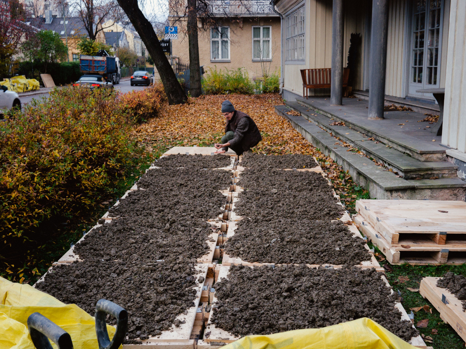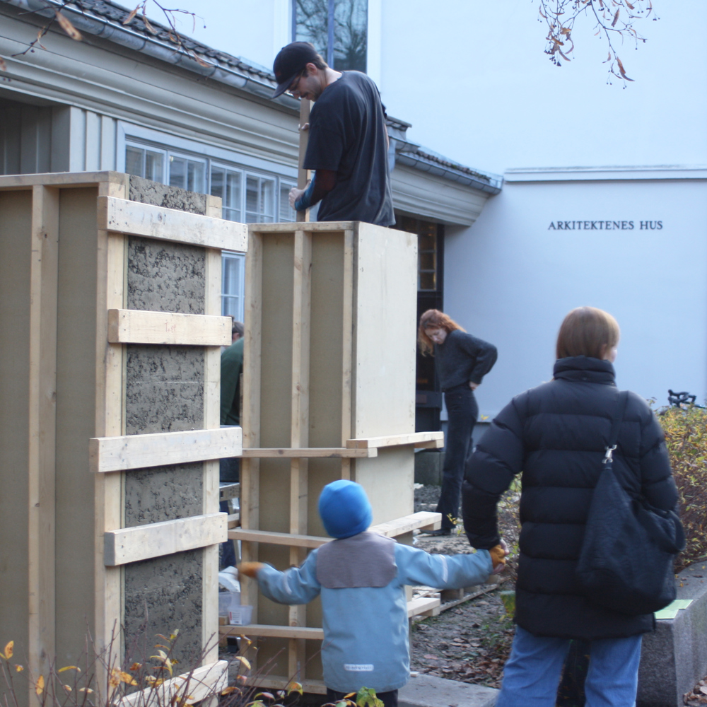 – Målet med dette prosjektet er å vise at vi kan bygge med stampet jord også i Norge. Heldigvis var vi så heldig å ha med Emmanuelle Déchelette, som har tatt tog fra Paris og vært i Oslo en hel uke. På initiativ med min tidligere kollega Rikke, nå Studio Winther, gjenbruker vi jorden som var til overs fra Færderbiennalen, sier Armelle Breuil fra ACT!