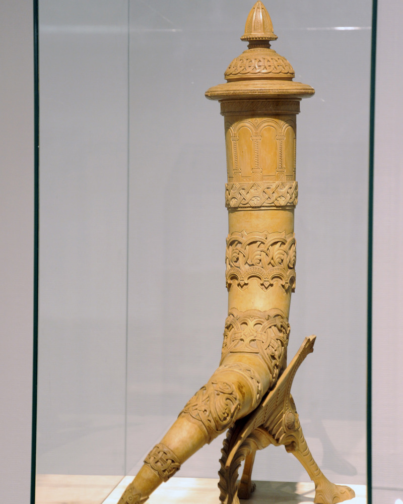 Magnus Dagestad laget blant annet dette drikkehornet som vises frem i utstillingen.