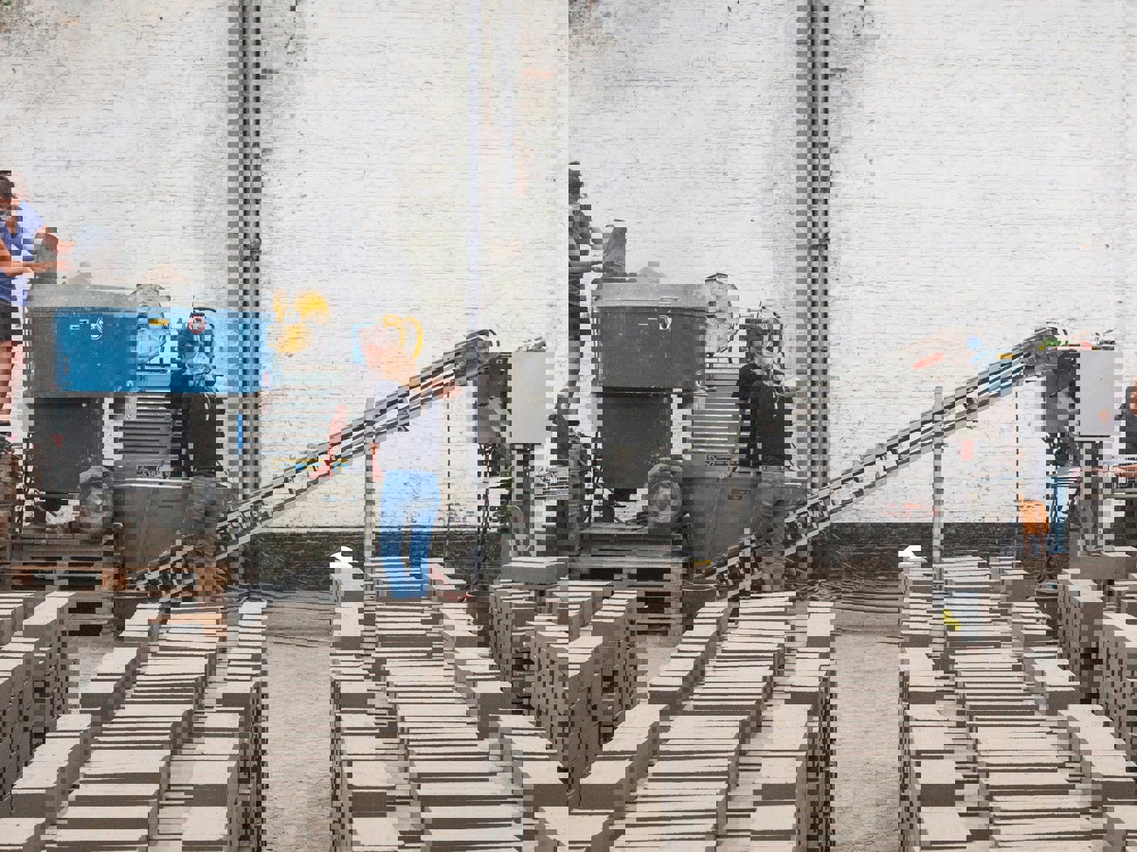 I Europa har denne typen jordteknologi mer vanlig. Her BC Materials, et belgisk selskap som arbeider med jord som byggemateriale, som en av de viktigste løsningene for å motvirke forurensning og avfall i byggebransjen. Her produksjonen av 19.000 komprimerte jord-«murstein» som ble laget under en tre ukers workshop.