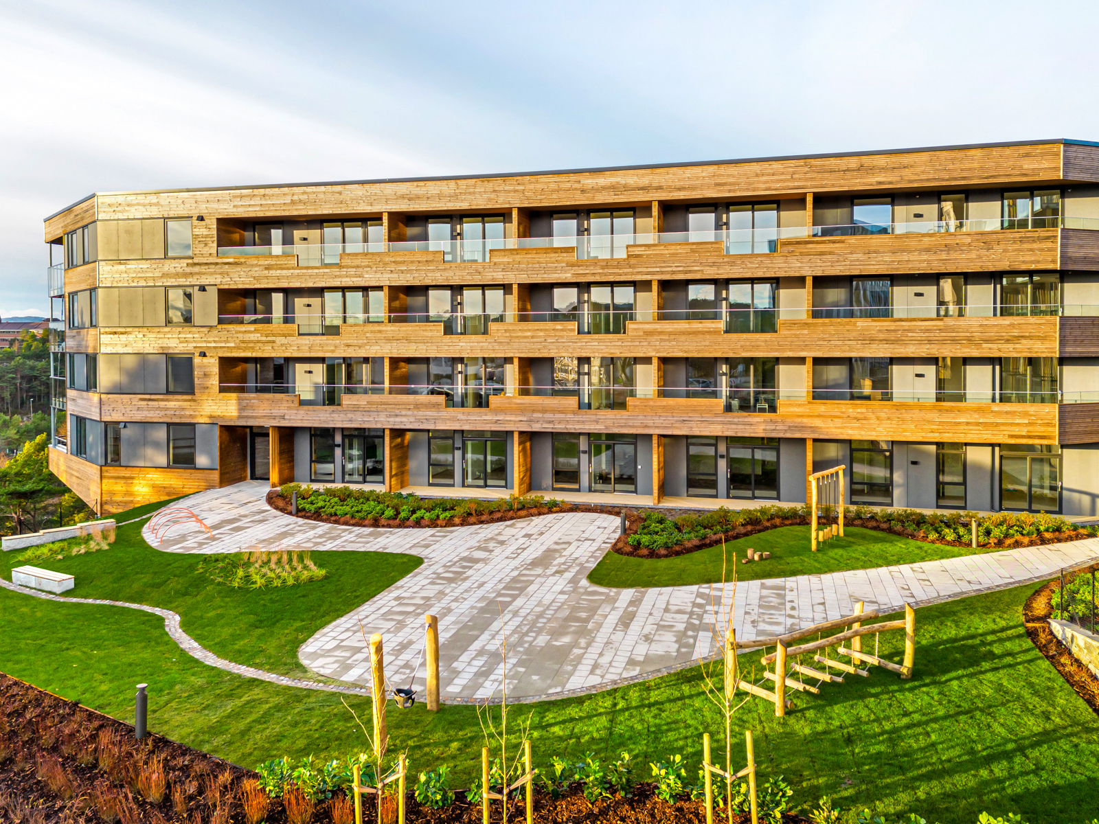 Paraply har detaljprosjektert gårdstun og natur i prosjektet Sandsli 360, et boligprosjekt med 199 leiligheter nært tilknyttet til bybanen i Bergen.