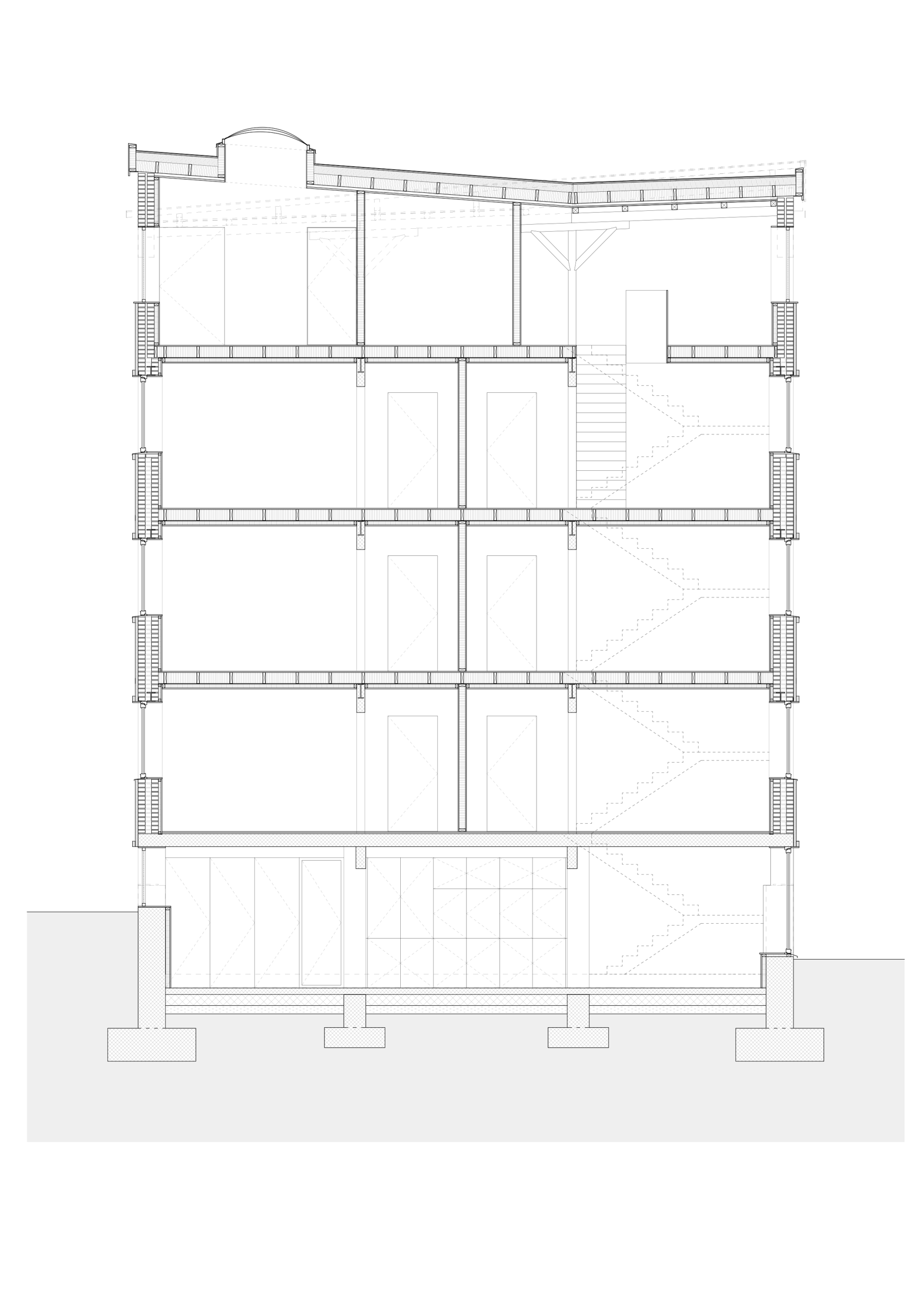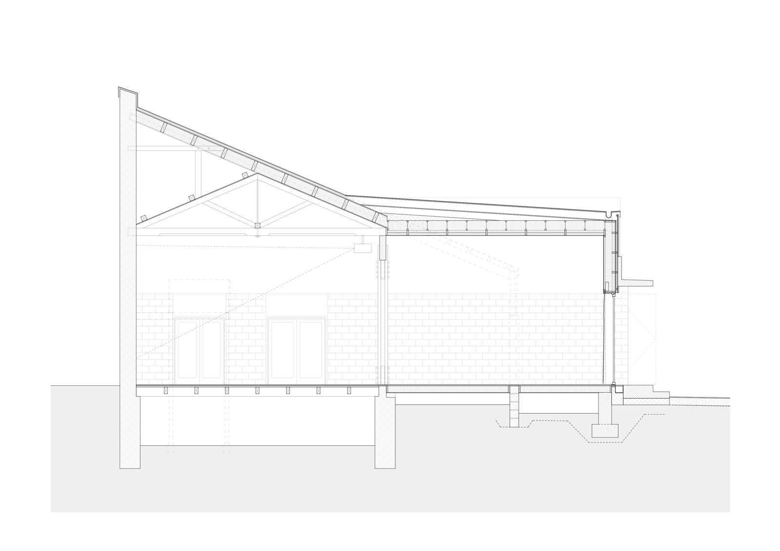 Snitt gjennom storsalen. Salen får en ny fasade, og rommet gjøres større og mer fleksibelt.