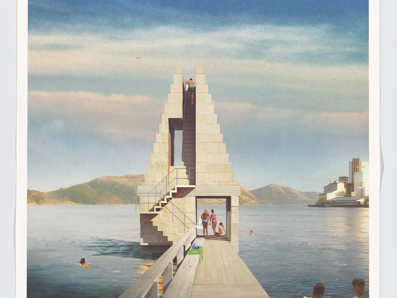 Badeklippen, 2018. Utkast til stupetårn ved Gandsfjorden.