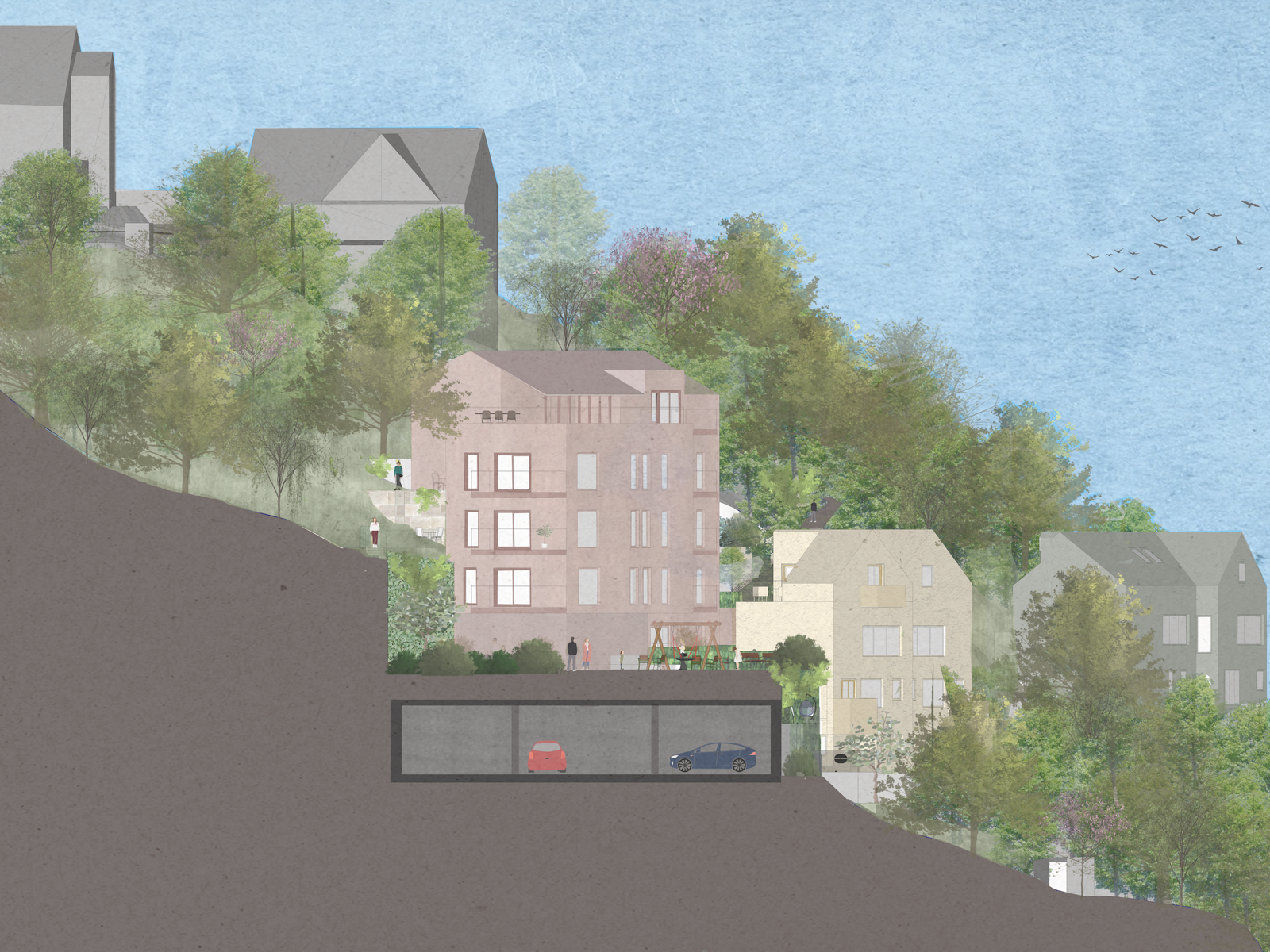 Regulering av boligfelt i svært bratt terreng i prosjekt på Dyrborg.