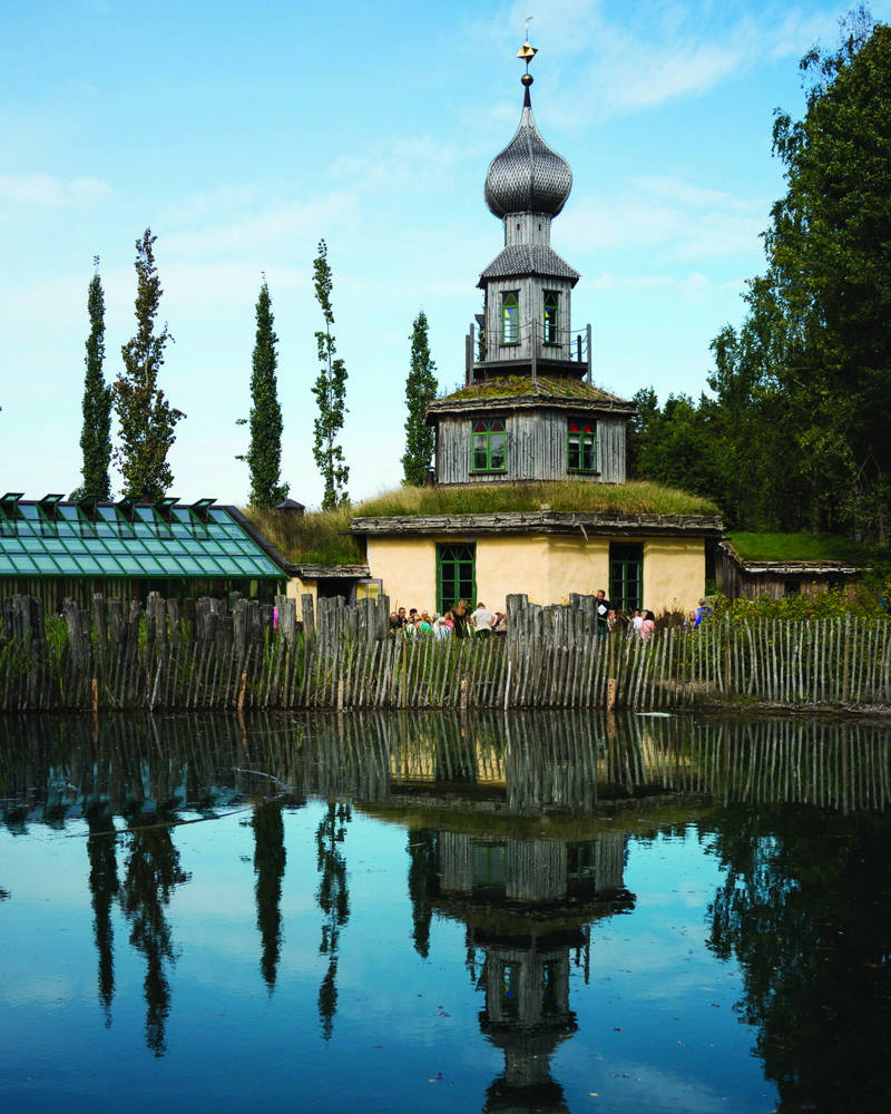 Kroen med sin løkkuppel står som et samlingspunkt på gårdstunet på Ramme.