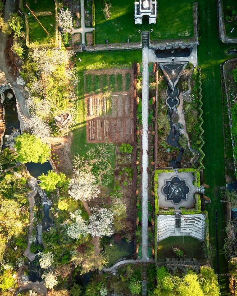 Havlystparken sett fra luften under kirsebærblomstringen i mai.