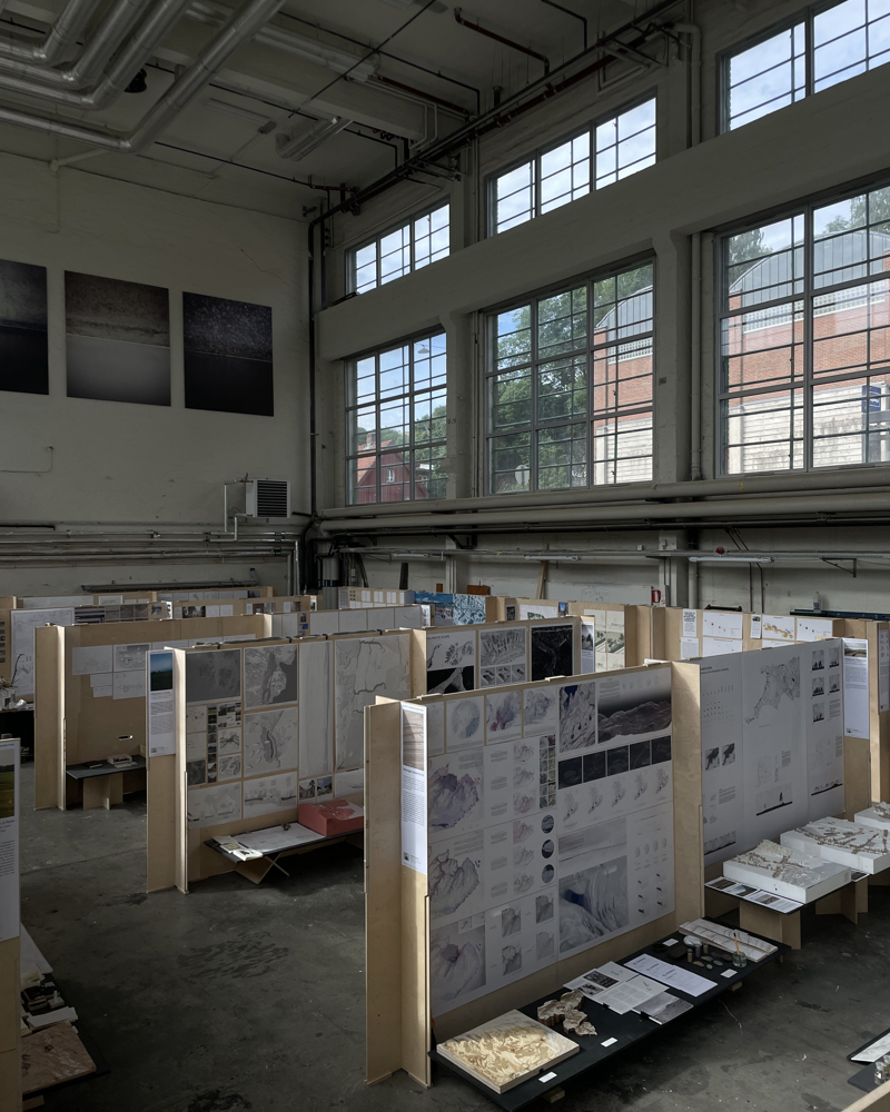 Diplomutstilling for arkitektur og landskapsarkitektur i byggehallen på AHO.