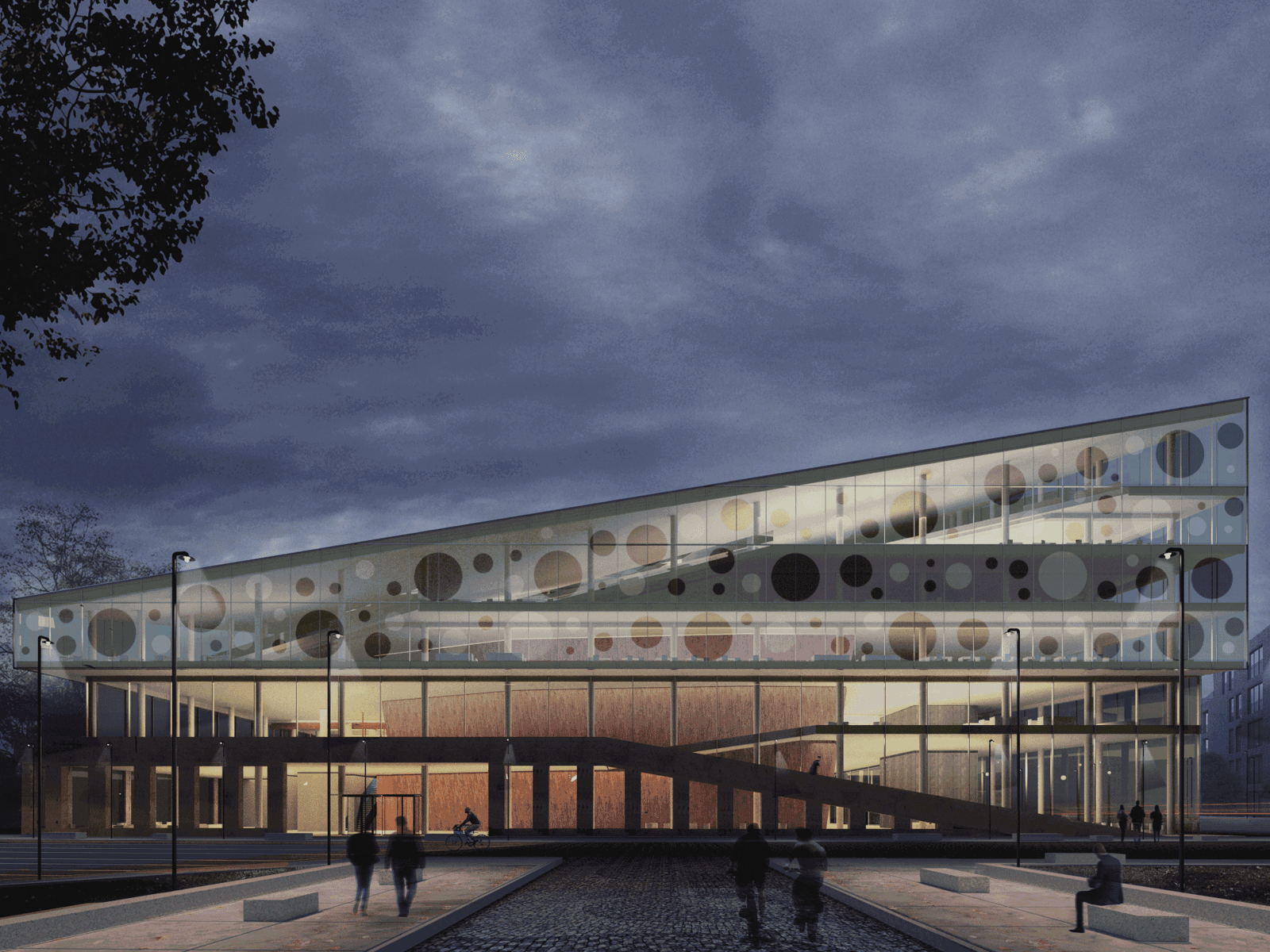 På arkitektutdanningens sjette semester på Arkitektur- og designhøgskolen i Oslo (AHO) jobber studentene med å tegne store offentlige bygg, og de siste årene har det vært flere oppgaver med NRK, blant annet ombygging på Marienlyst, og på en tenkt tomt på Økern.