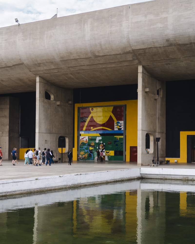 Multikunstner: I tillegg til å være arkitekt, utviklet Le Corbusier flere fargepaletter, som blant annet pryder Chandigarhs høysterettsbygning. Kombinasjonen av de gjennomgående åpningene og de fargede veggene, som oppfattes som søyler fra denne vinkelen, gjør den visuelt tunge betongen mer innbydende.
