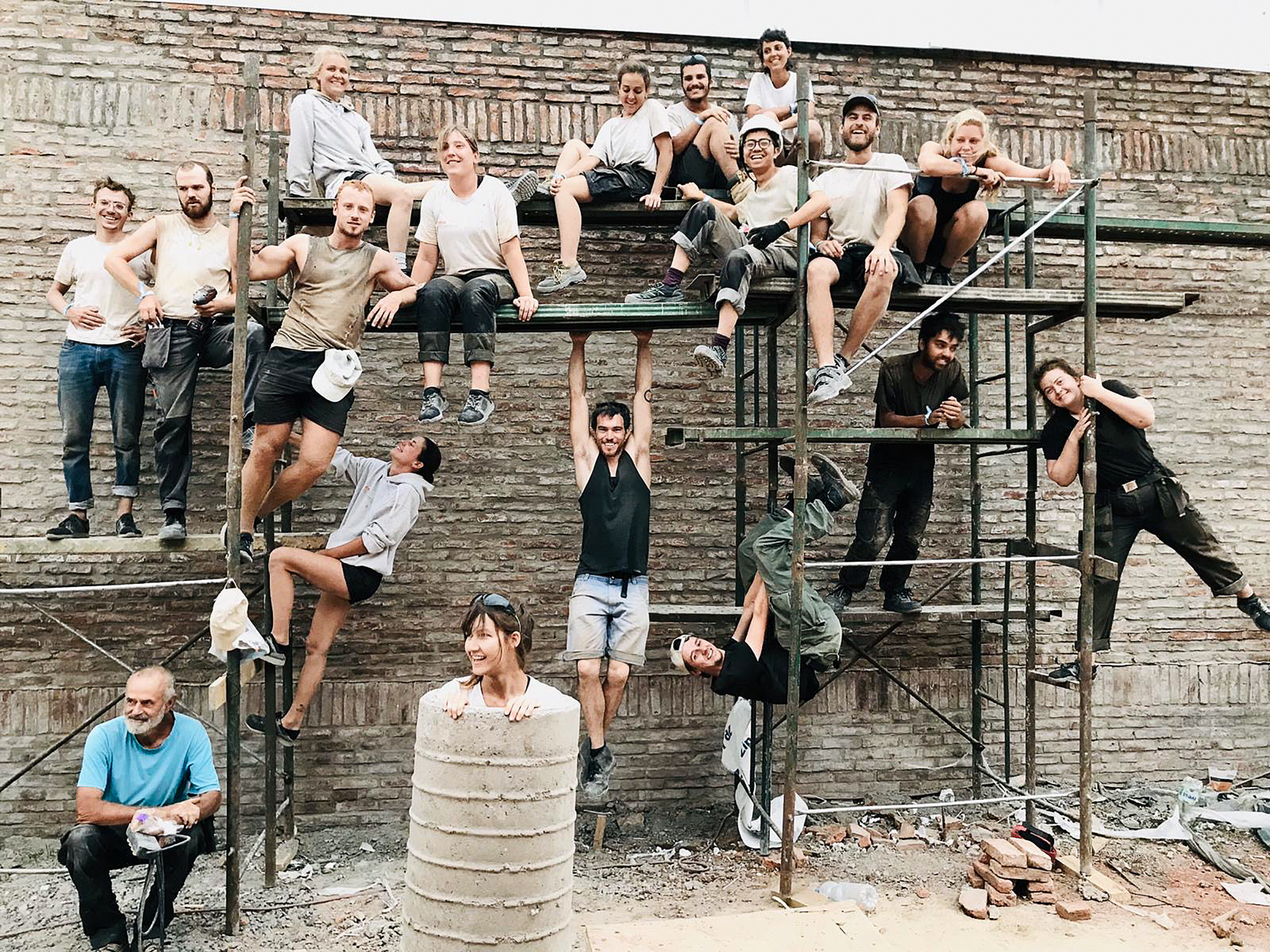 Slik så det ut på byggeplass da AHO-kurset Scarcity & Creativity Studio og Arkitekter uten grenser jobbet i Buenos Aires 2019.