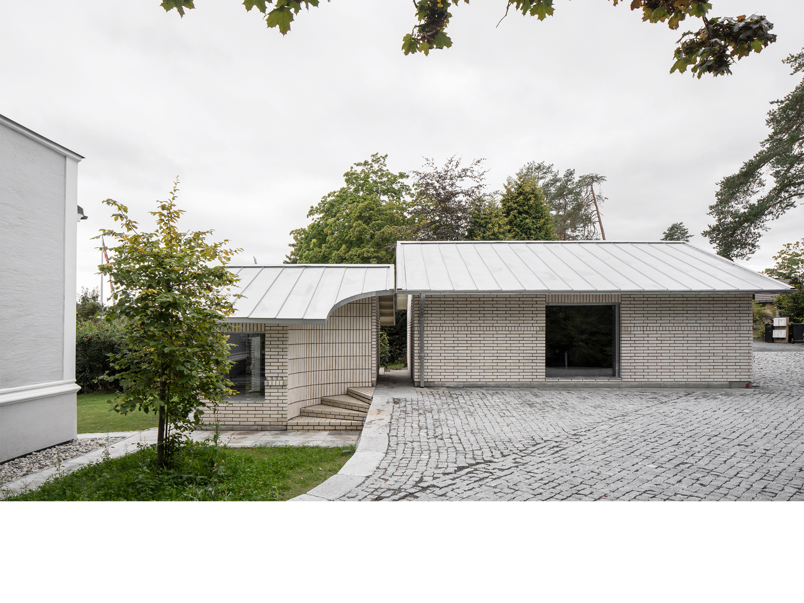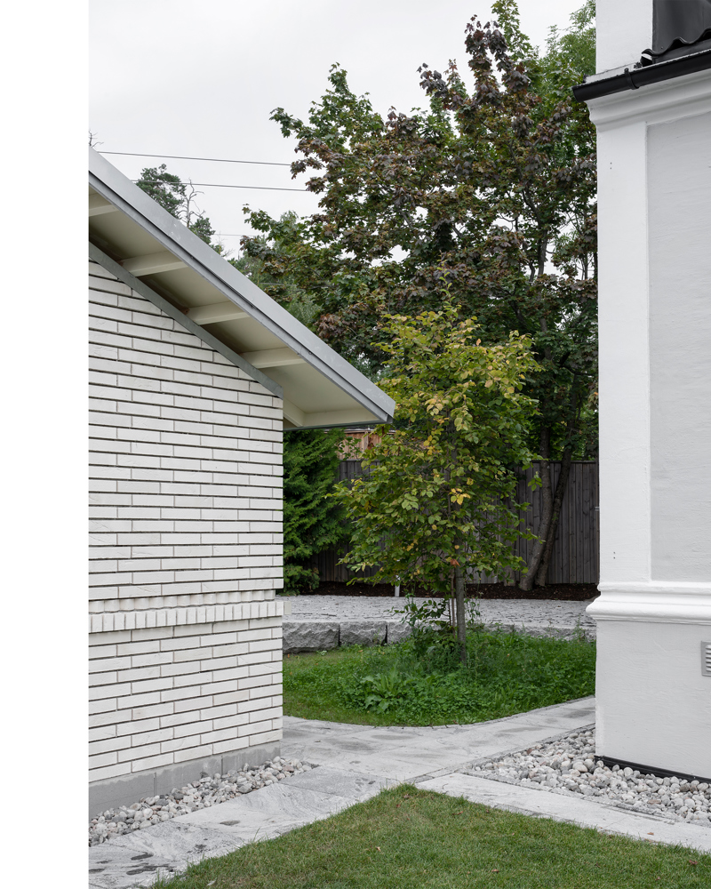 Tilbygget skiller seg tydelig fra det originale huset, men har samtidig et formspråk som minner om funksjonalismen.