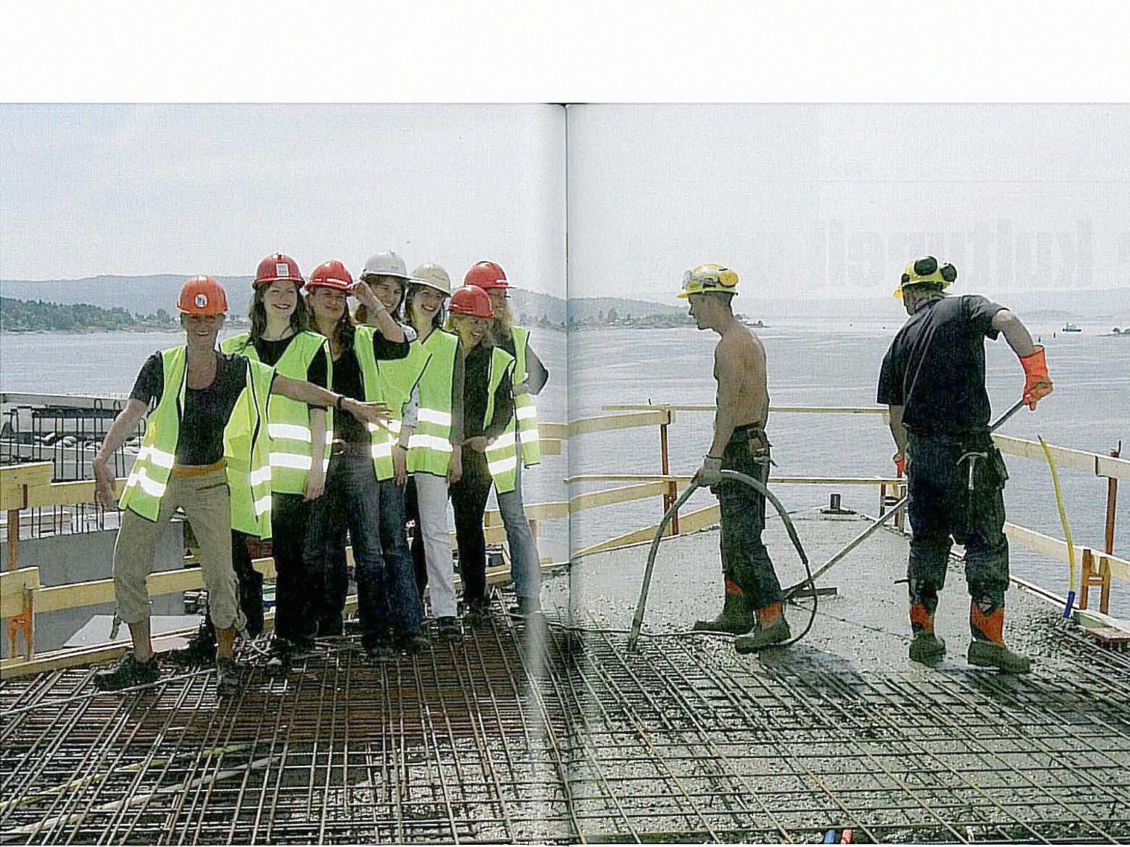 «Girlpower» på byggeplassen på Tjuvholmen. Fra venstre; Kari Nissen Brodtkorb, Lene Raanæs, Kristin Aasbø, Luise Schlunk, Hedvig Witsø, Maj Jøsok, Jeanette Wikstrøm.