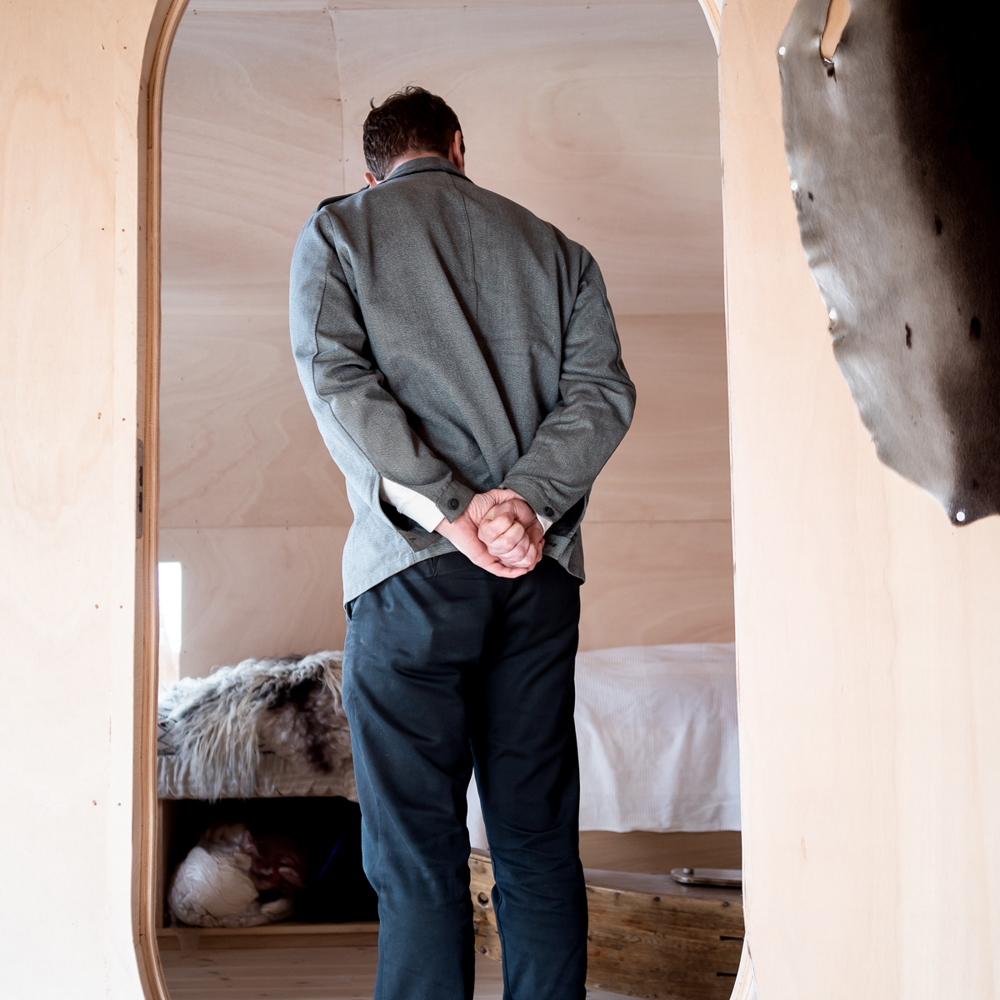 – Det handler om å forstå hva som må til for at det blir et rom. Hadde vi hatt skarpe kanter på denne boksen, ville vi ikke fått den samme flyten mellom de to rommene. Buen her er sinnssykt viktig fordi du skaper romdeling og flyt, samtidig som du helt praktisk ikke slår hodet når du skal hvile deg. Det er små, viktige grep som gir noe helt annet enn om vi hadde puttet en ingeniørtegnet boks inni et gammelt naust, sier Folgerø.