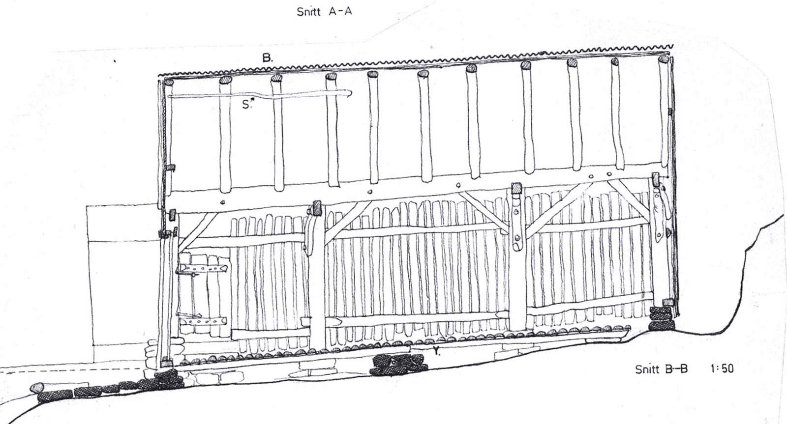 Nøst luftig og tørt med «naturlig ventilasjon» ved hjelp av stående kledning med cirka 15 spalter. Fra Rødøy kommune i Helgeland.