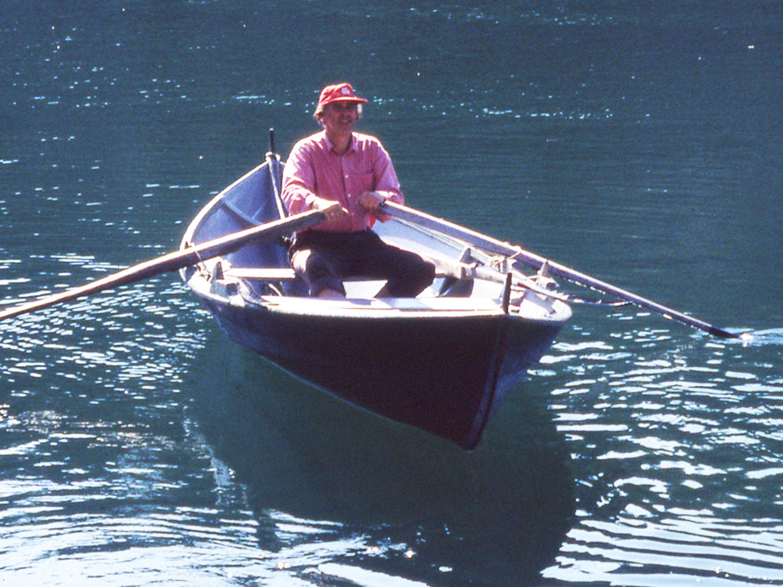 En lettrodd færing på vannet i Øygarden.