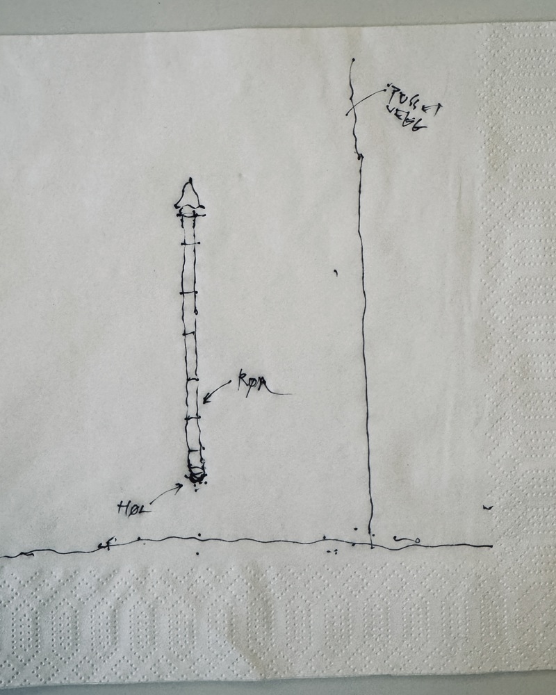 Jeg ser frem til å komme på AHO, gjøre foredrag, skrive små innlegg på LinkedIn om røret, kanskje første slide bare er serviett-skissen: en vegg med et rør.