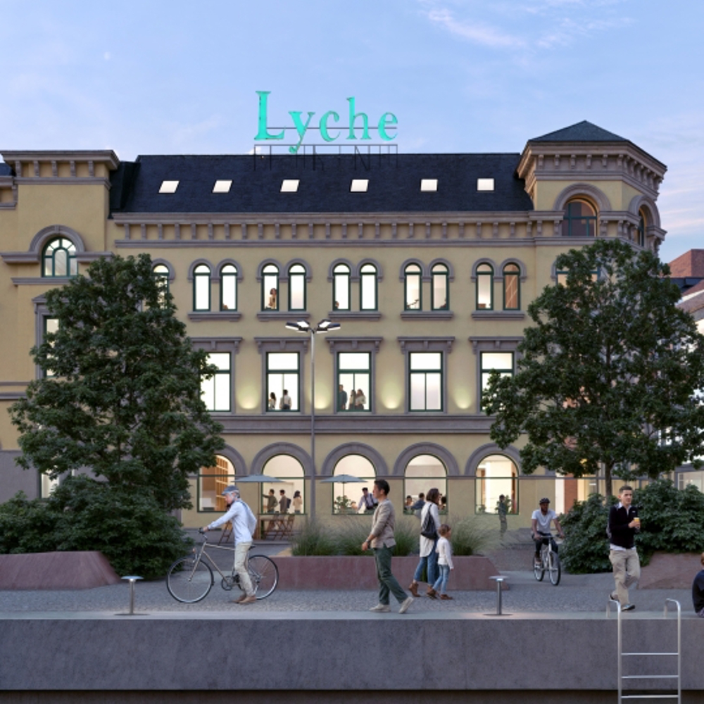 Et ombygget Lychebygget i Drammen fra sør. Slik KIMA Arkitekter visualiserte det i 2024.