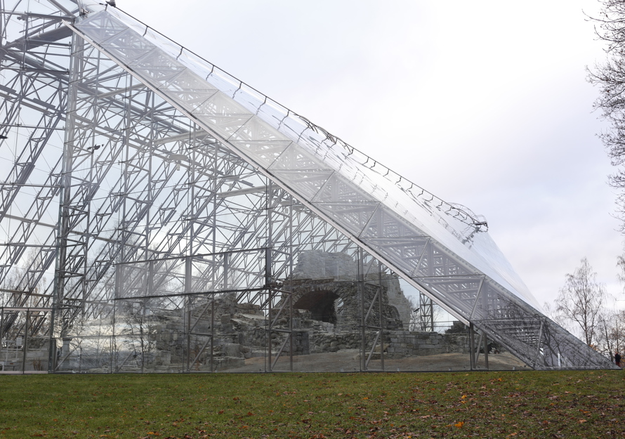 I juli 2025 falt en av glassrutene i vernebygget rundt domkirkeruinene i Hamar ned, og gjorde at bygget måtte stenge.