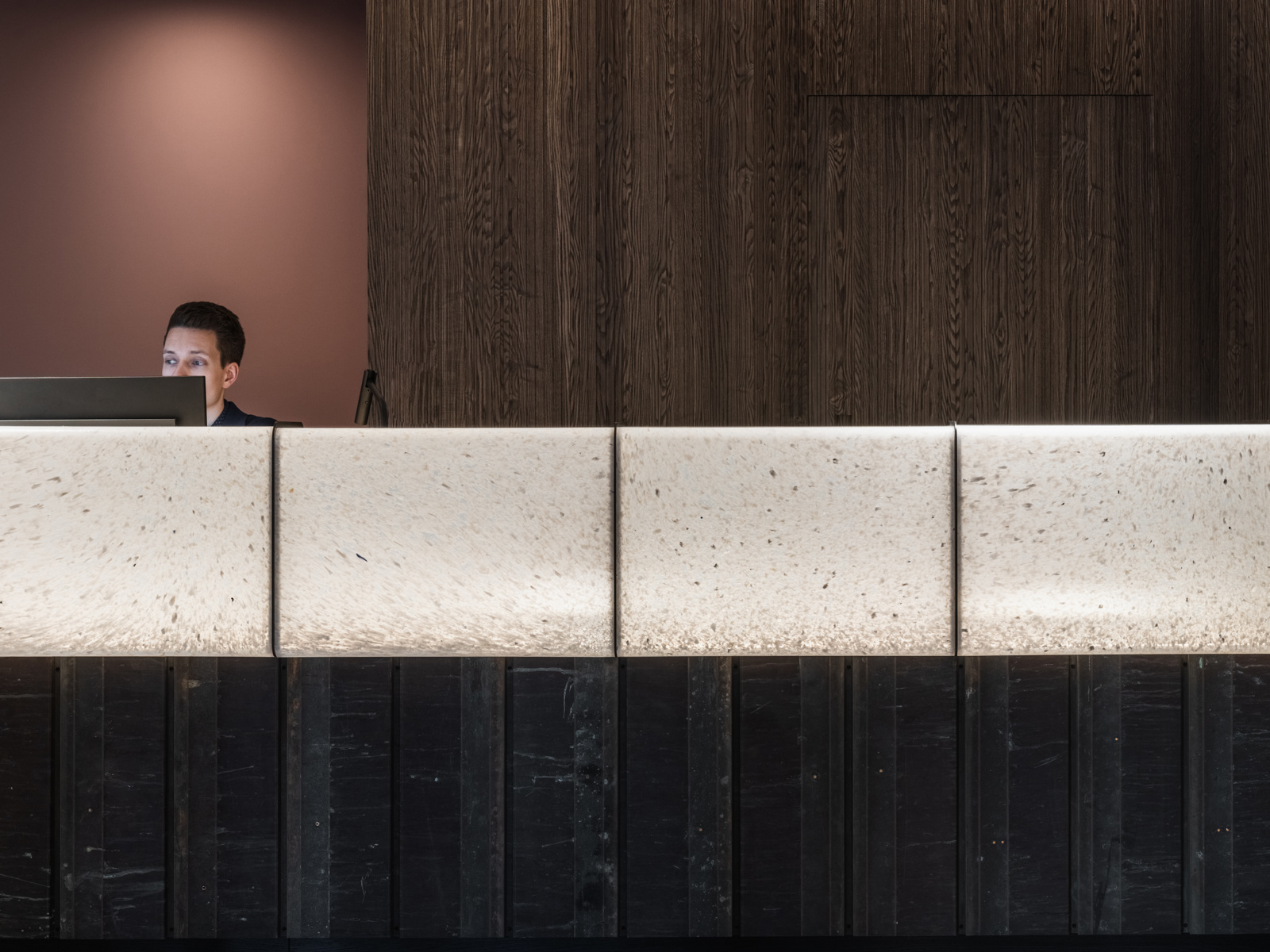 Prosjekt / Interiør T12 Advokatfirmaet Schjødt Oslo Arkitektur Utgave 4 2024 Arkitekter Ledsten Arkitektur AS Den bærende kunsten: Videreføring av kunstsamling og utsmykning var helt sentralt da advokatkontoret Schjødt flyttet inn i den nyrenoverte Tordenskiolds gate 12. Arkitektur Utgave 4 2024